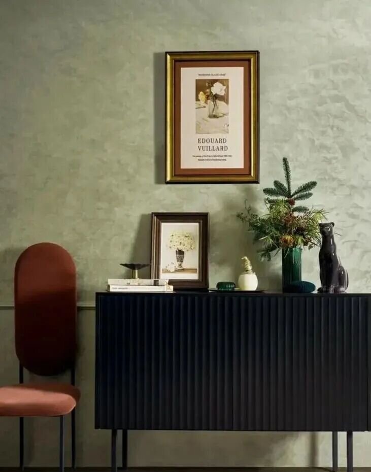 天鵝絨藝術(shù)漆是賦予墻面生命力的 “魔術(shù)師”。它并非真實(shí)的絨布上墻,卻以精妙的工藝,將天鵝絨的柔潤(rùn)觸感與朦朧光澤,悄悄織進(jìn)墻面的每一寸肌理里。絨面,先于視覺醒來(lái)。它們不是被機(jī)器壓印的花樣,而是乳液與珠光粉在空氣中自然舒展的“呼吸根”。于是光落下時(shí),每根絨毛都成了微型的捕光器——亮部柔焦、暗部深邃。